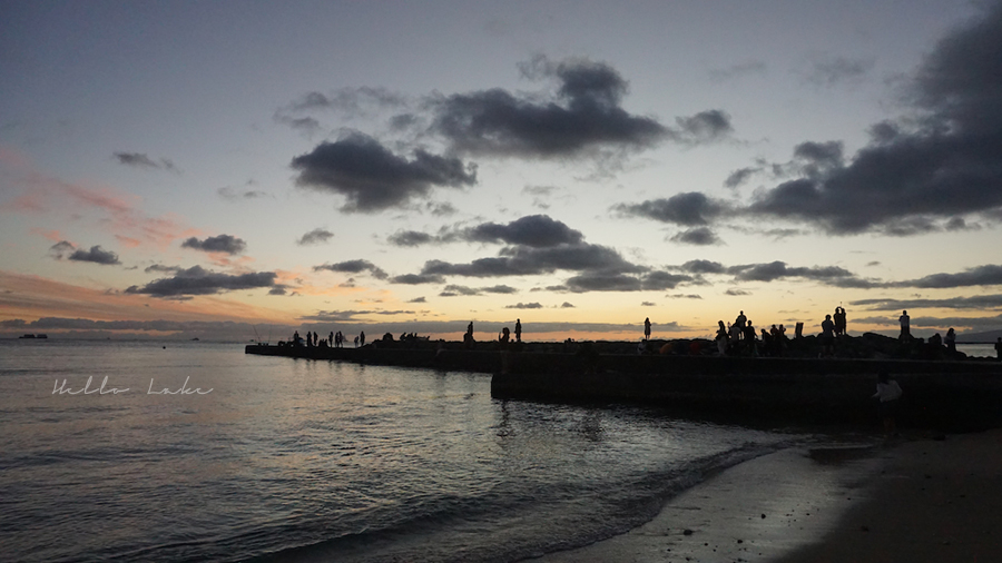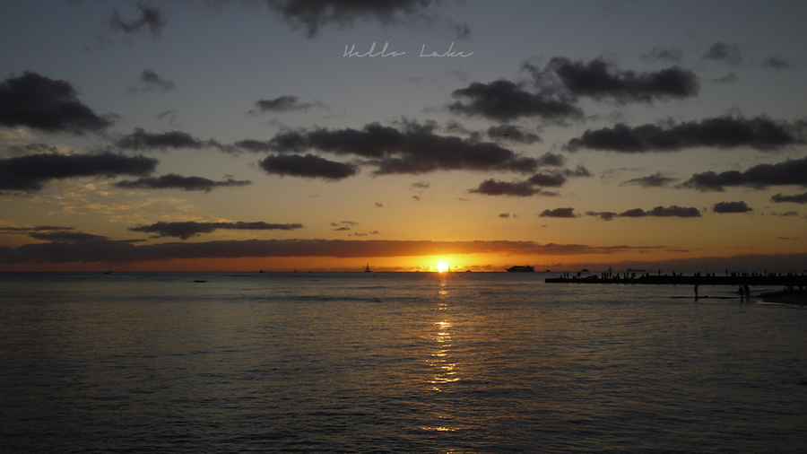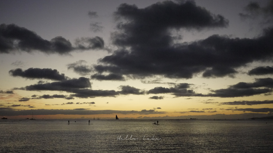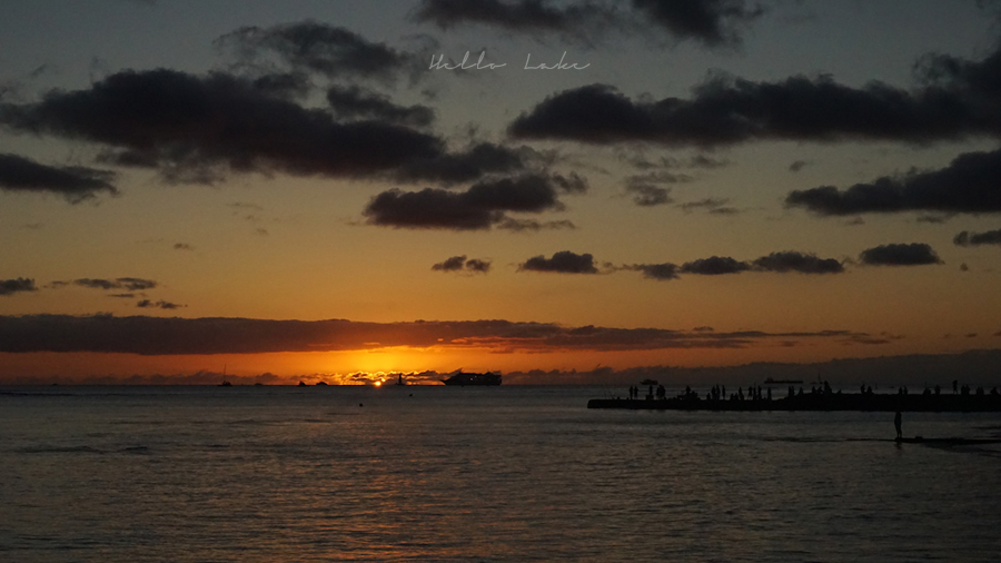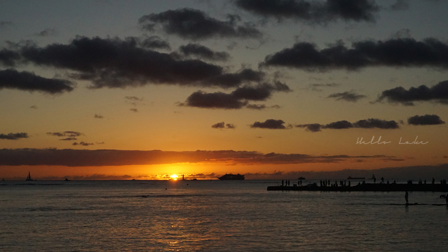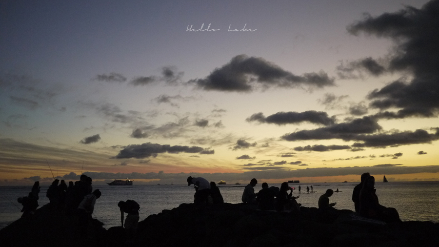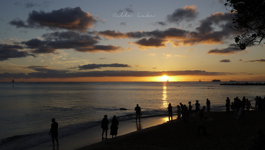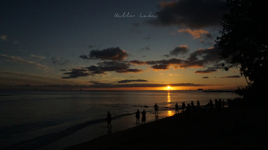 와이키키로 돌아와 호텔에서 해피아워 칵테일을 한잔씩 마시고, 해지는 비치로 나갔다.