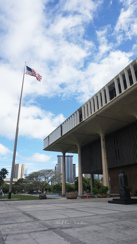 빅토리아 피렌체 건축양식을 따른 이올라니 궁전은 하와이 왕조의 칼라카우아(Kalakaua) 왕이 1882년에 건설했다고 한다. 박물관으로 쓰이고 있는 내부도 관람이 가능 하다고는 하지만.. 들어가 볼 생각은 전혀 하지 않음.