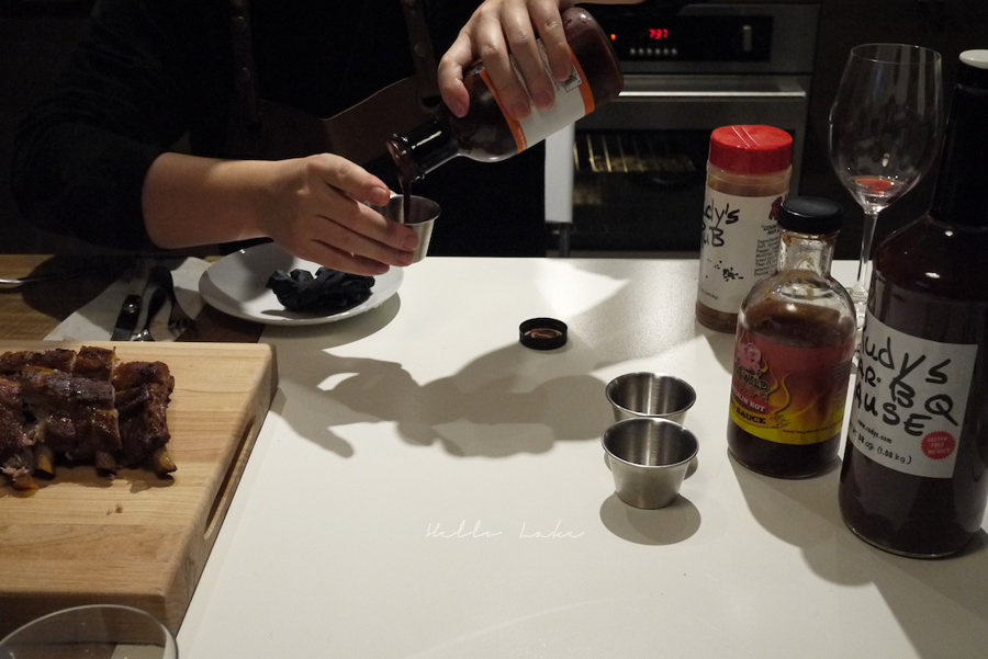 뭔 가정집에 바베큐 소스가 세가지나 있는지... 골고루 취향대로 골라먹기.